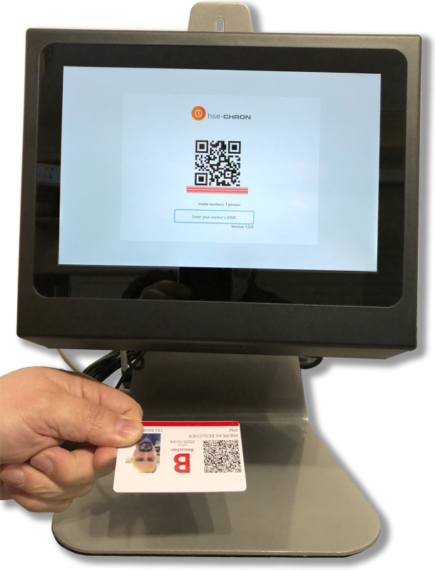 Die WebApp hse-CHRON funktioniert wie eine digitale Stempeluhr und registriert Eingangs- und Ausgangszeiten und damit letztlich Anwesenheiten. hse-CHRON ist für die Betriebsysteme Android und Windows 10 freigegeben. Der Betrieb kann sowohl auf festinstallierten Anmelde-Terminals als auch auf mobilen Endgeräten konfiguriert werden. Im Kombination mit hse‐GATEMAN kann hse-CHRON zu einem einfachen Zugangskontrollsystem an Toren, Schranken und Drehkreuzen ausgebaut werden.