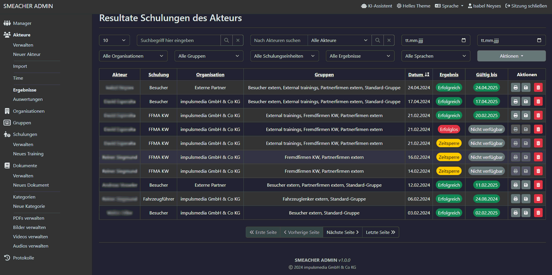 Behalten Sie mit dem Smeacher-Schulungsmanagement den Überblick. Verwalten Sie Ihre Akteure und Inhalte, teilen Kurse in Lerneinheiten ein und fassen Teilnehmer in Lerngruppen zusammen. Die integrierten Analysetools geben Ihnen über Kurse, Teilnehmerzahl, über Lernfortschritte und Erfolge Ihrer Kursteilnehmer Aufschluss. Mit einem Klick visualisieren Sie Ihr Monitoring in Reports – transparent und nachvollziehbar.
